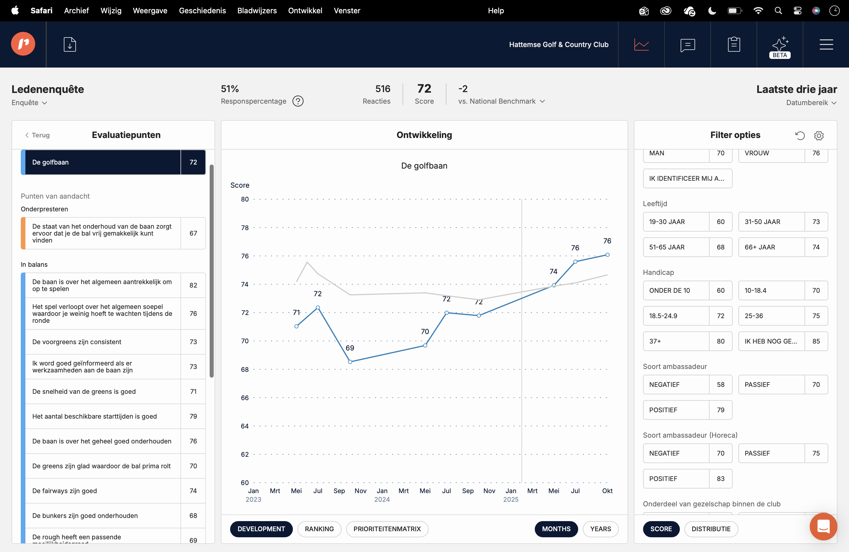 Op basis van de verzamelde feedback van leden van de Hattemse Golf & Country Club zijn er verschillende gebieden geïdentificeerd waar de club slecht presteert. De belangrijkste punten zijn op het gebied van:
